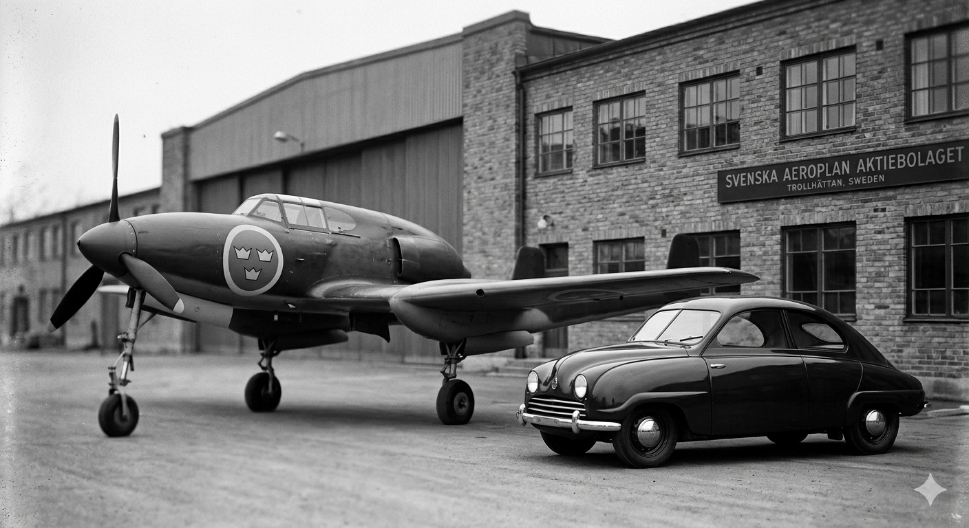 Svenska Aeroplan Aktiebolaget (SAAB) grundades 1937 i Trollhättan. Uppdraget var tydligt: att bygga flygplan till det svenska flygvapnet inför det hotande världskriget. När freden kom 1945 insåg ledningen att de behövde en civil produkt för att hålla fabriken igång.